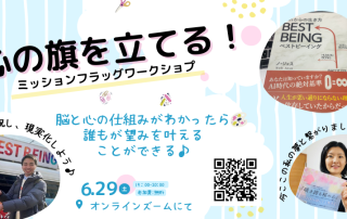 Mission Flag プロジェクト 誰もが望みを叶えることができるワークショップ ・望みを叶えるためには、脳と心についての関係性の理解が必要だった。 脳と心の仕組みを知らないと、自分の枠を越える夢は叶わない。 ・熱くなりたいけど熱くなれない人 ・周りにあわせて、自分のしたいことがわからない人
